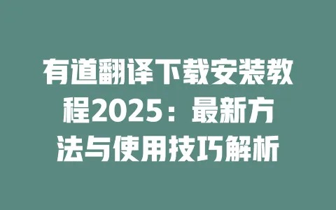 在日常办公、学习和跨语言交流中,有道翻译因其高效、多语言支持及智能翻译功能被广泛使用。然而,部分用户在下载安装过程中可能遇到下载失败、安装异常或软件无法启动的问题。为了帮助用户快速解决这些问题并顺利使用软件,本文将围绕 有道翻译下载失败或安装异常解决方案 展开全面解析,覆盖下载流程、常见原因、详细解决方法及优化技巧,确保用户顺利获取官方正版并高效使用。
